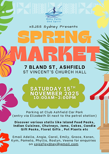 Celebrate the season at our xSJSS Sydney Spring Market on Saturday, 15 November from 10am–3pm at St Vincent’s Church Hall, Ashfield. Browse a variety of vibrant stalls featuring Island food packs, Indian cuisines, chutneys, jams, cakes, candles, floral gifts, pot plants, and more!